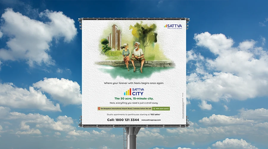 Sattva set out to launch one of its most ambitious developments in Bengaluru – a sprawling 50-acre integrated township located close to the airport. The objective was to create a launch campaign that would cut through the clutter of a highly saturated real estate market. Instead of relying on predictable messaging around amenities, specifications, and location advantages, the brand sought communication that felt fresh, memorable, and emotionally engaging. At the same time, the campaign needed to do justice to the scale and ambition of Sattva City while appealing to a wide and diverse audience.