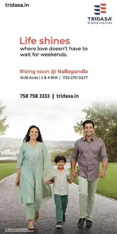 Tridasa Realty Ventures is a new-age real estate brand backed by the Vasudha Group, with a strong focus on empathy, quality, and transparency. The brand’s first venture was Tridasa RISE, a premium residential apartment project in Nallagandla, Hyderabad.